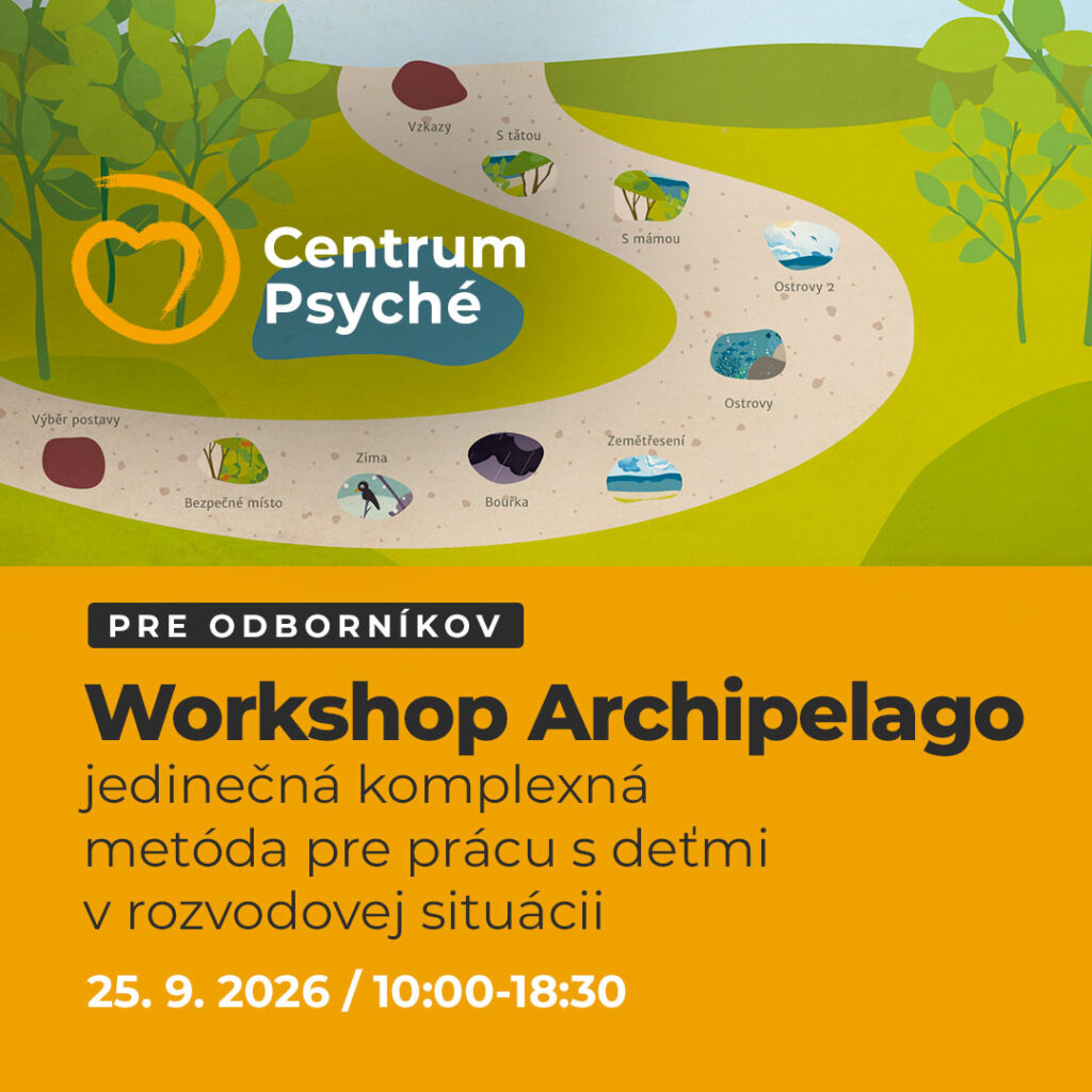 Popis: Jednodňový kurz Archipelago je zamarený na prácu s deťmi, ktoré zažili rozvod alebo rozchod rodičov. Kurz je plný podnetov, práce v malej skupine, ktorá umožňuje zdieľanie skúseností a kauzistických prípadov. Kurz nie je len úvodom do metódy Archipelago, ale celkovo do práce s deťmi v náročných životných situáciách. Archipelago je pôvodný komplexný český program, ktorý slúži ako terapeutická pomôcka pre prácu s deťmi, ktoré prešli rozvodom či rozchodom rodičov. Súčasťou programu je práca s počítačovým softwarom navrhnutým pre tento program, práca s príbehom a s knižkou, výroba hrdinu príbehu z látok…